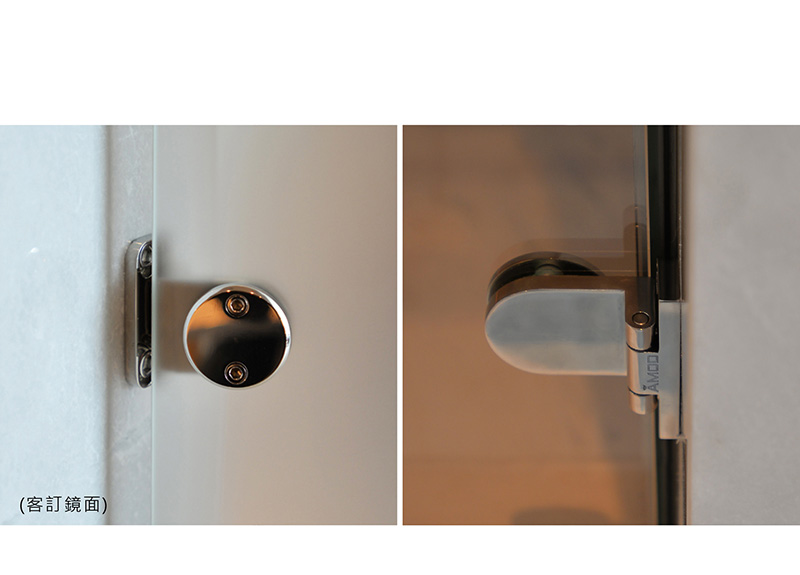 師傅手拋毛絲表面無電鍍,正面、反面一樣美觀。玻對牆鉸鏈同時提供不鏽鋼原色/鈦黑色。