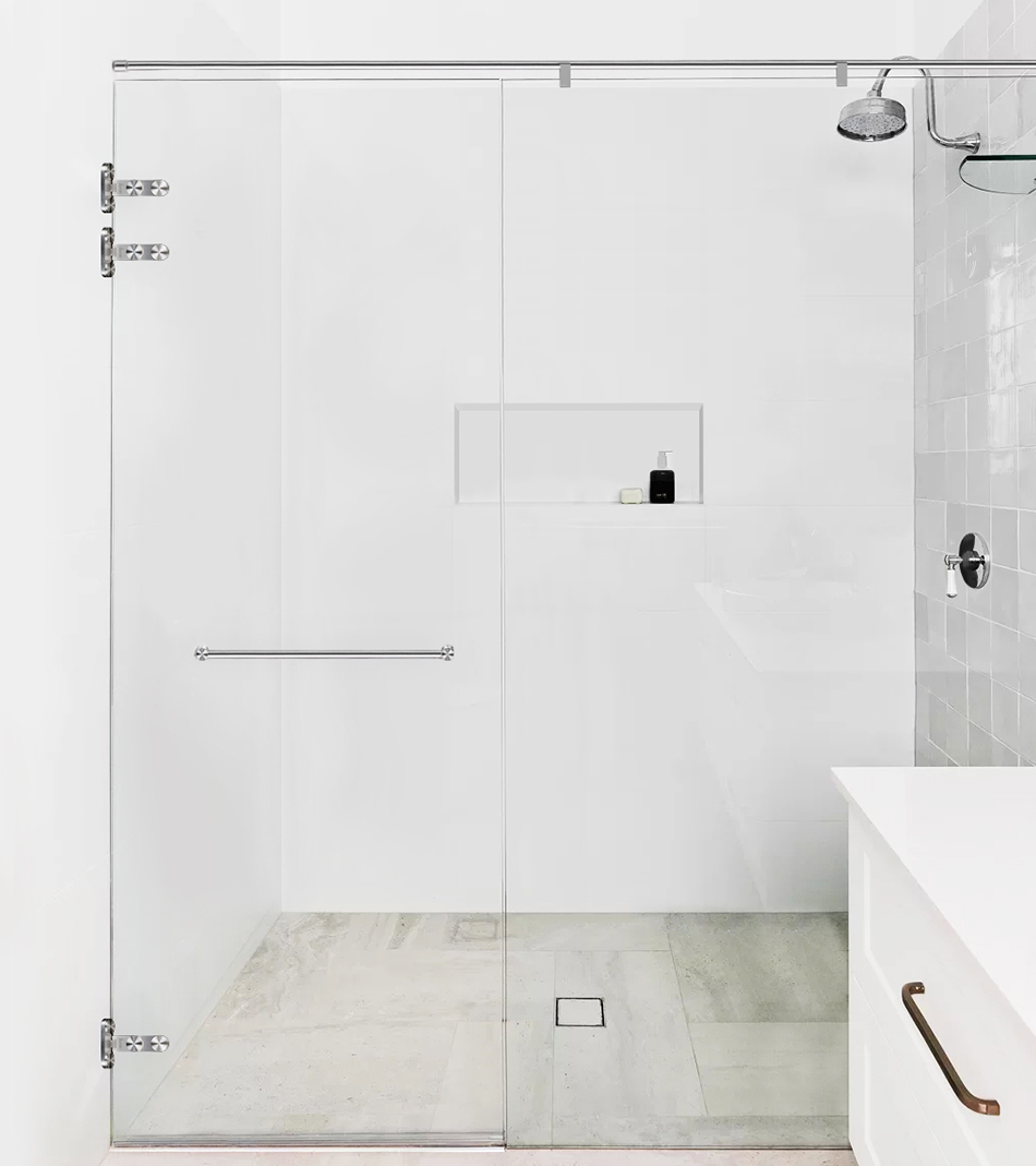 Penna 運用在全玻璃規劃設計的淋浴間更顯簡潔而優雅。並且,純鋼材拉絲處理的本體,使清潔工作更為輕鬆。