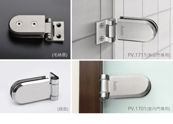 Pivoge是一款經典扎實的玻對牆鉸鏈,裡外材質均為304不鏽鋼,適合在淋浴間及室內隔間玻璃門上使用。能提供180度門片開啟角度,同時提供毛絲面及鏡面兩種規格。