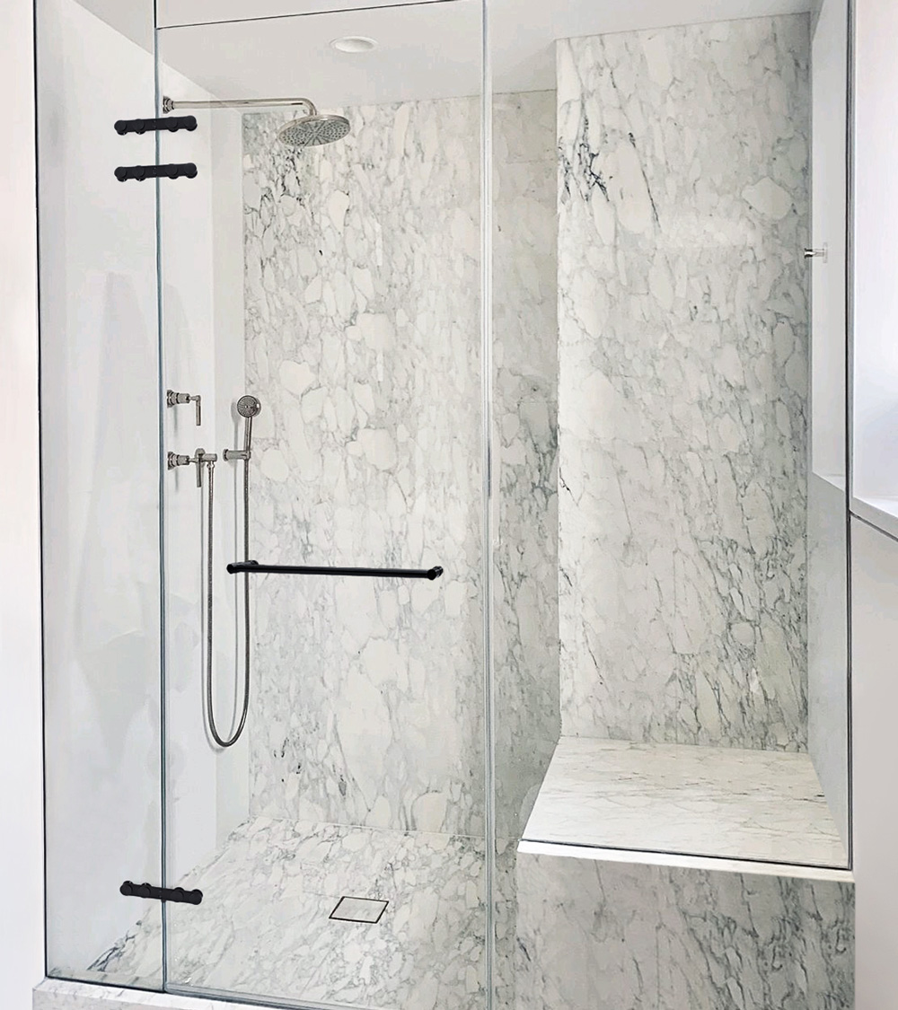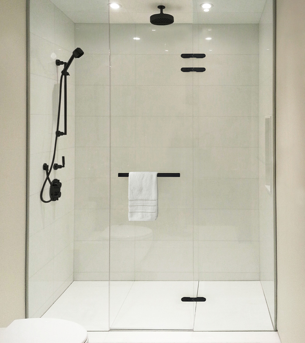 Penna 運用在全玻璃規劃設計的淋浴間更顯簡潔而優雅。並且,純鋼材拉絲處理的本體,使清潔工作更為輕鬆。