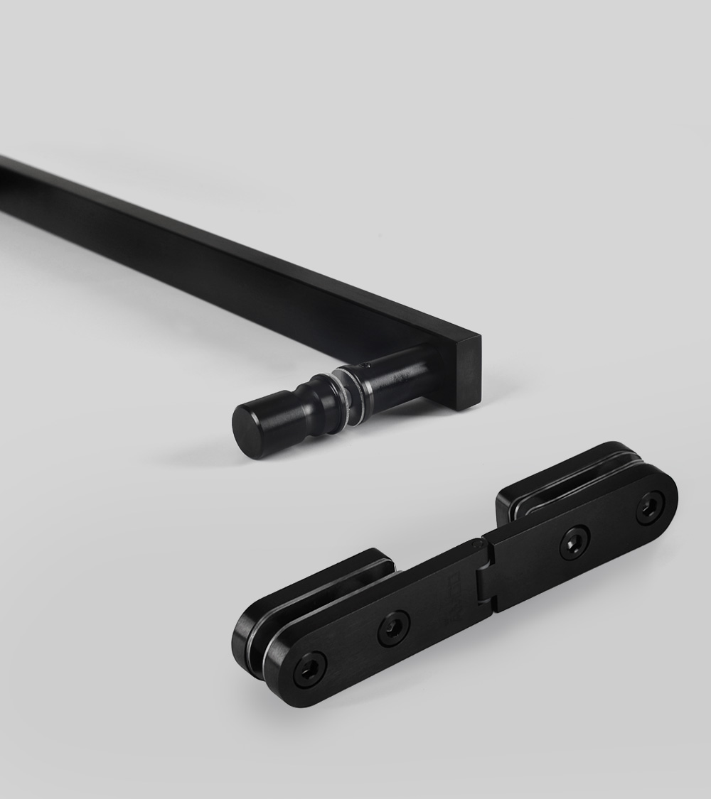 Leni 是款『雙向運動』的玻璃門鉸鏈。秉持原廠一貫的製造工藝,整副鉸鏈使用純不鏽鋼材為原料,以CNC加工完成的Leni,具備了一體成形的外貌及精度,不同於其他品牌以大批量產的產品。