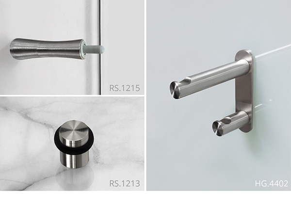 Roundie系列專為重度使用的公共空間玻璃五金所設計,提供了廁所導擺或是試衣間完全不同的面貌及質感。