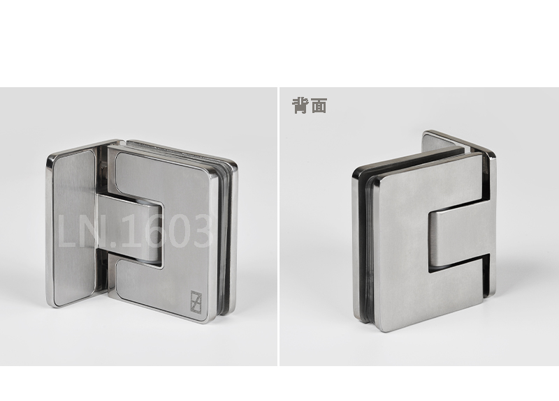 師傅手拋毛絲表面無電鍍,正面、反面一樣美觀。玻對玻鉸鏈同時提供不鏽鋼原色/鈦黑色。