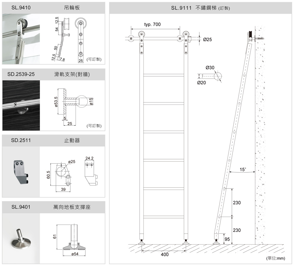 專為室內設計項目所需而設計的不鏽鋼梯,不僅在材質上採用全鋼質梯身以及滑軌,精緻的加工品以及實用性設計,絕對能夠凸顯設計師需求,以及業主的獨特品味。 (五金資訊可詳右上角"Info" )